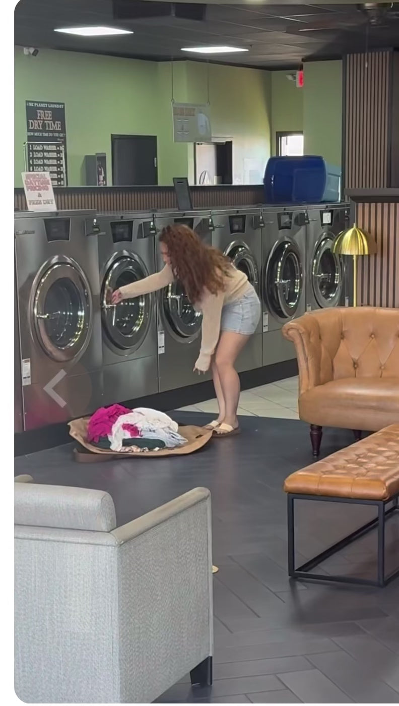 Die faltbare Einkaufstasche, die sich in eine große runde Decke verwandelt. Perfekt für Einkäufe, Wäsche, Spielzeug oder Picknick